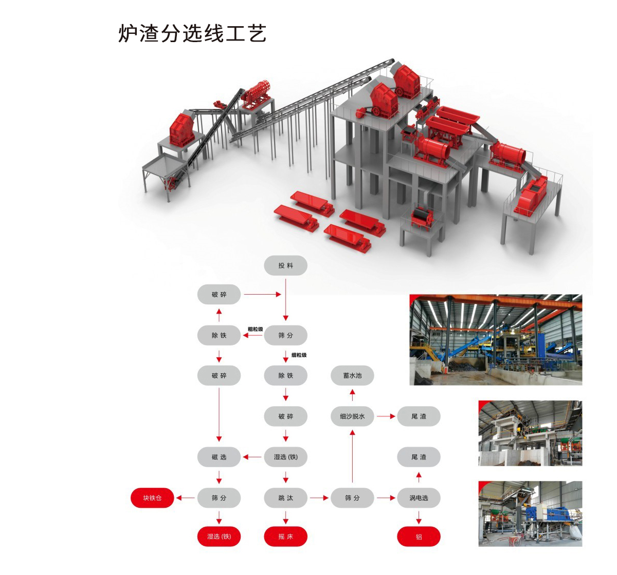 對焚燒后的生活垃圾進行破碎、篩分,利用磁選設備回收金屬鐵,利用渦電選設備回收鋁,利用跳汰、搖床等設備回收銅等貴重金屬。