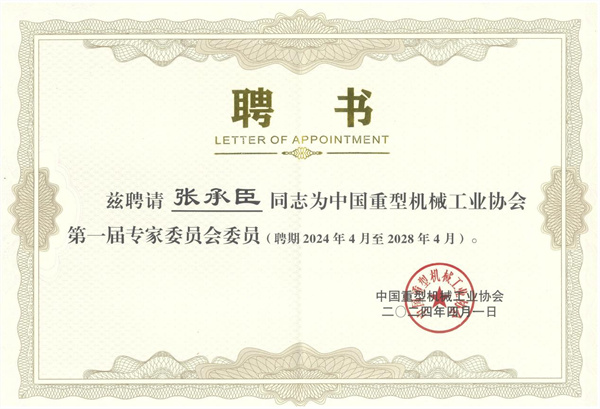 當(dāng)選中國重型機(jī)械工業(yè)協(xié)會第一屆專家委員會專家