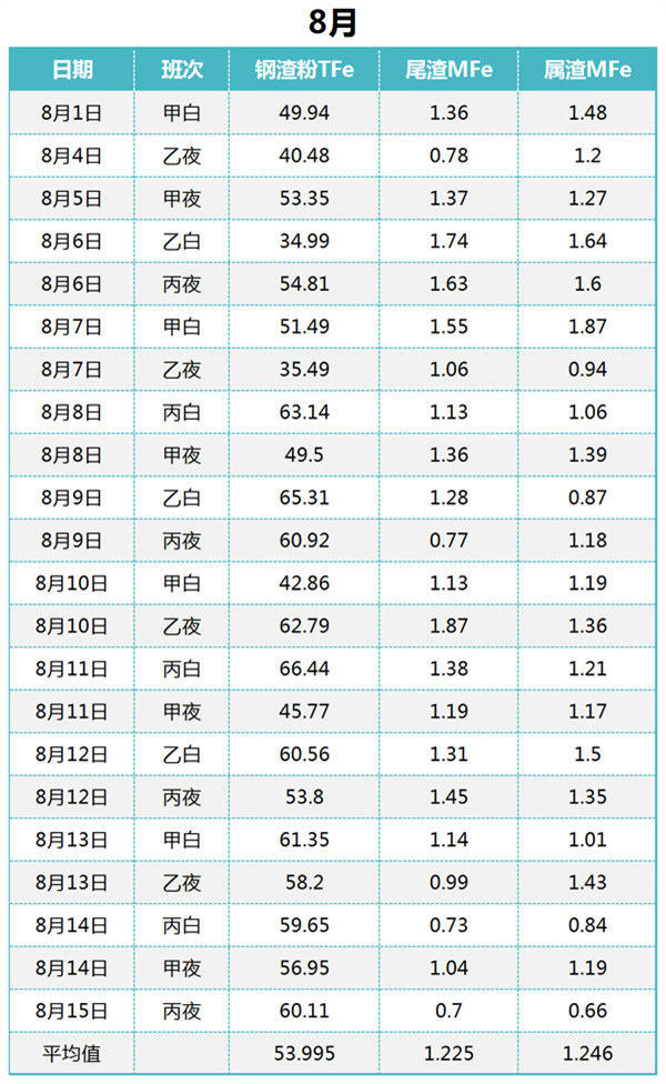 值得一提的是,在2023年6月至8月的連續跟蹤監測中,該生產線的磁選粉和尾渣指標均表現出色。磁選粉的全鐵指標超過50%,尾渣金屬鐵含量穩定在1.2%左右,遠低于國內平均水平。這一優異表現不僅降低了有害元素和廢渣的二次冶煉需求,還顯著減少了尾渣中金屬鐵的流失。據客戶反饋,各方面數據依舊保持穩定。